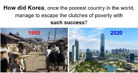 한국의 경제에 대한 내용을 어디서부터 어떻게 풀어가야 하나 고민이 많았다. 하지만 시간이 짧으므로 한국전쟁 이후부터 지금까지 얼마나, 어떻게 경제적으로 성장했는지를 설명해 주는 것으로 내용을 구성했다. 한국이 큰 경제 발전을 이룰 수 있었던 이유를 꼭 설명해 주고 싶어서 많은 자료를 찾아보았는데, 학자들마다 의견이 조금씩 달랐다. 내가 정리해 본 이유는 첫째, 한국 전쟁 이후 자본주의(Capitalism) 도입과자립(Self-Help) 의식, 둘째, 과감한 시장 정책, 셋째, 기업(Entrepreneurs) 투자와 재벌(Conglomerate)의 성장이었다.