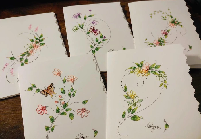 넬의 집은 우리 집에서 차로 딱 7분이 걸리는 거리였다. 그 정도면 미국에서 같은 동네나 다름없는?! 아주 가까운 거리였다. 아기자기한 꽃들이 집 앞을 장식하고 있는 빨간 벽돌집이었다. 집 안 곳곳 깔끔함과 단정함이 묻어났다. 벽에는 본인의 그림 작품을 여기저기 아름답게 장식해 놓으셨다. 오십 대에 퇴직을 하셨고 그 이후로는 취미, 교회, 봉사활동을 하시며 생활하고 계셨다. 첫 방문 때 내게 주신 선물은 손으로 곱게 뜬 레이스로 꾸며진 카드 5개, 처음 보는 것이었다. 이름을 여쭈니 태팅이라고 하시며 퇴직 후부터 즐기는 취미 중 하나라고 하셨다.
