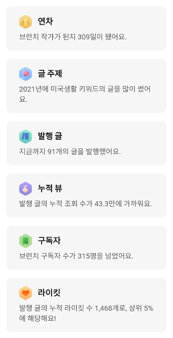 작년 2월 초에 시작한 브런치는 지금까지 약 11개월이 흘렀다. 언제까지 미국 생활이 이어질지 모르지만 미국에서 보낸 삶, 보내고 있는 삶을 기록으로 남기고 싶어서 놀 때마다 시간이 날 때마다 틈틈이 기록으로 남겼다. 그렇게 하나 둘 글이 쌓이다 보니 작년 동안 101개의 글을 썼고, 구독자 수는 300명이 넘었다. 그리고 그로 인해 가끔 꿈같은 일들이 생기기도 했다.