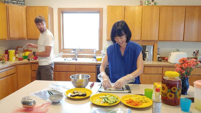 하루는 필립과 아이들에게 김밥을 싸 줄 요량으로 미리 준비해서 냉동실에 넣어놨던 김밥용 김을 꺼냈다. 빵보다 밥을 즐겨 먹는 필립네 집에는 역시나 일본 코끼리 밥솥이 주방 가운데에 자리 잡고 있었다. 김밥을 싸 주려고 하다 보니 문제는 밥이었다. 미국의 많은 사람들은 찰기가 전혀 없는 롱 그레인 쌀(long grain rice, 일명 태국 쌀)을 즐겨 먹는 경우가 많다. 다행히도 필립은 한국 쌀 종류인 숏 그레인 쌀(Short grain rice)을 먹고 있었다.