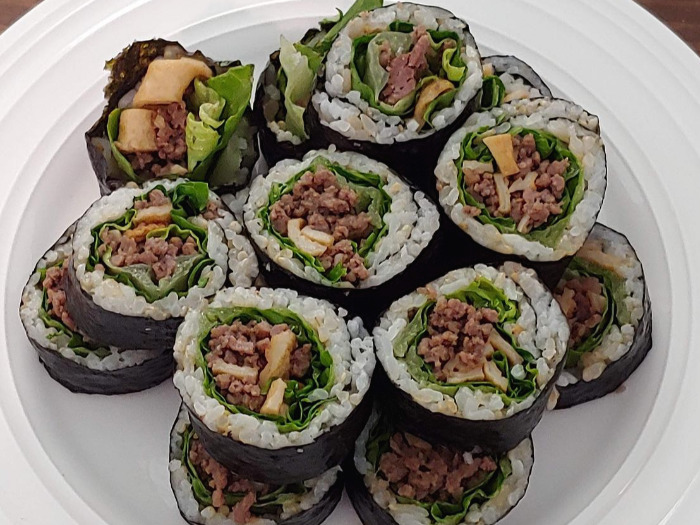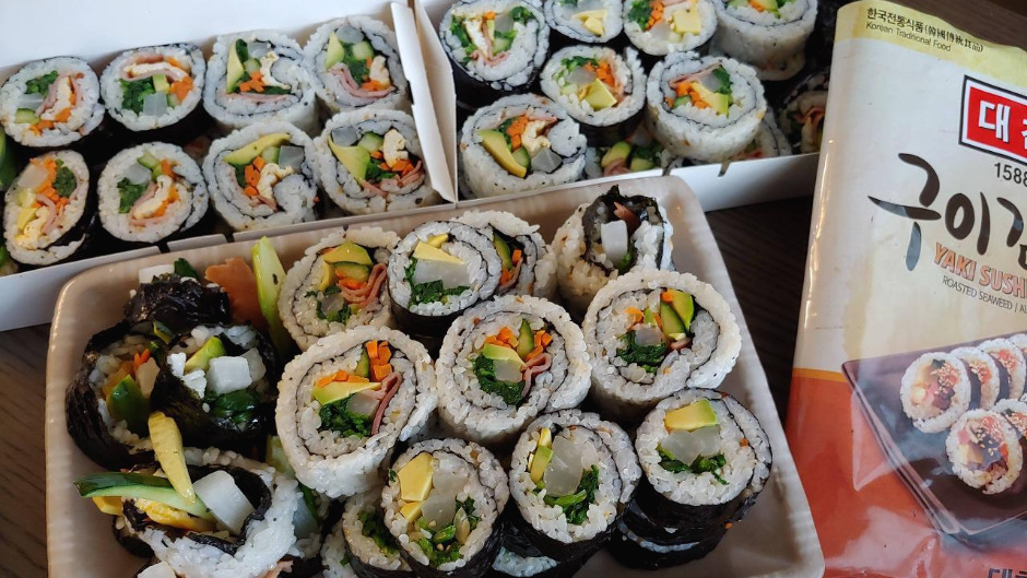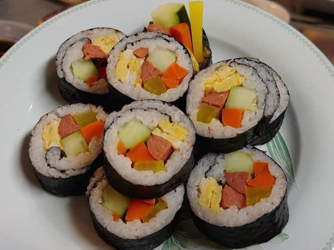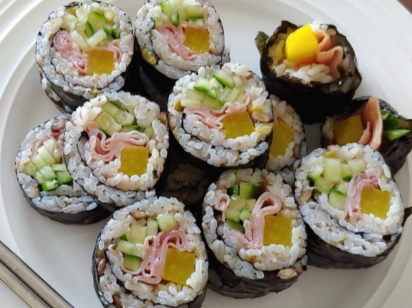 오늘 뭐 먹지? 질문을 해 볼 때, 김과 밥만 있으면 만들어 먹기도 크게 어렵지 않고 맛도 좋으며, 있는 재료에 따라 다양한 변주를 즐길 수 있는 음식으로 단연 김밥을 들고 싶다. 원래부터 김밥을 좋아하기도 했지만 미국에서 지내면서 더욱더 좋아지기 시작했다. 이제는 내가 제일 좋아하는 한국 음식으로 김밥을 꼽는다. 친구네 집에 초대를 받으면 나는 우선순위로 김밥을 만들어 갈 생각을 먼저 한다. 한국인 가정으로 초대를 받을 때 김밥을 대접받으면 그 역시도 너무 맛있고 좋다.