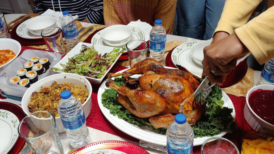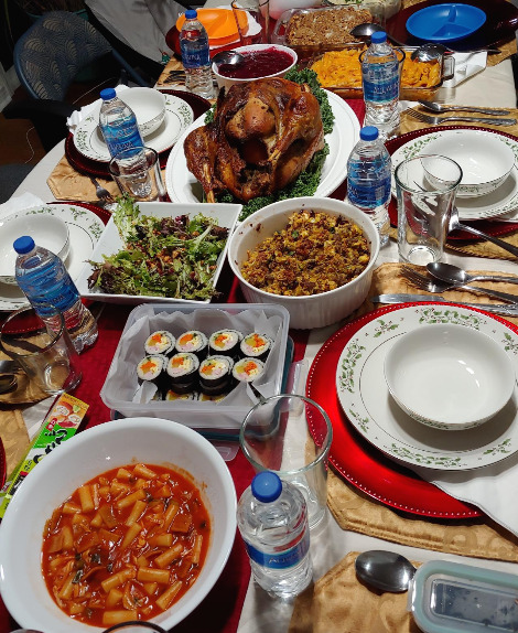 사실 김밥과 떡볶이를 처음 먹어 보는 흑인 친구들이 너무 생소해서 안 좋아하면 어떡하나 약간의 걱정을 하기도 했다. 김의 해초 맛과 떡볶이의 미끈한 식감을 안 좋아하는 미국 친구들을 몇 번 본 기억이 떠올랐다. 하지만 예상외로 두 가지 한국 음식 모두 인기가 많았다. 김밥은 식사 초반부에 다 사라져 버렸다. 역시 김밥은 오늘의 땡스기빙 식탁에서도 빛을 발했다. 떡볶이는 대학생인 친구네 두 조카가 맛있게 먹었다. 정말 맵지만 달달한 맛이 좋다며 이상하게 계속 먹게 된다고 했다. 내 앞에서 떡볶이를 야무지게 먹는 두 명의 흑인 대학생을 보면서 왠지 마음이 뿌듯했다.