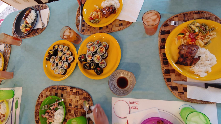 매일 집밥을 만들어 먹어야 하는 미국 생활에서 '오늘 뭐 먹지?' 하는 문제는 한국에서보다 더 중요한 문제로 다가온다. 한국에서 있을 땐 아침은 바쁘니까 대충 해결, 점심은 학교 급식으로 해결, 저녁은 종종 회식, 외식, 배달, 또는 포장 음식으로 해결하곤 했다. 그러나 미국에서 살면서부터는 주로 집에서 만드는 음식과 도시락으로 밥을 챙겨 먹는다. 이유는 당연히 한국음식이 맛있고 먹고 싶기 때문, 또한 미국 식당 음식은 그다지 맛이 없고 한국음식보다 건강에도 좋지 않으며 비싼 것도 이유가 될 것 같다.