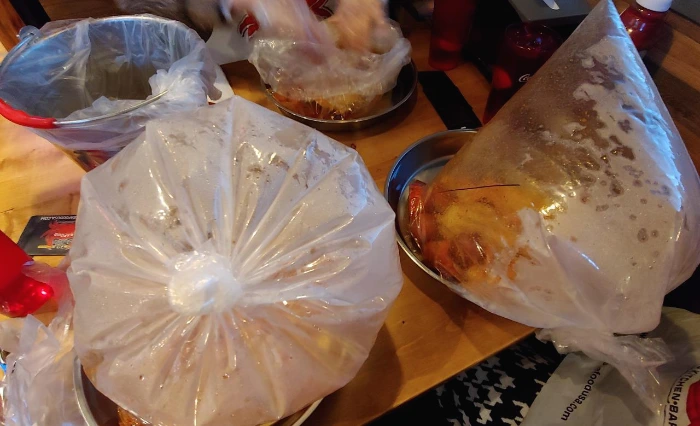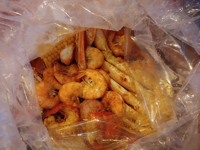 설날을 축하하며 친구들과 함께 맛있는 음식을 먹었다. 설날을 앞둔 일요일 오전, 동네에서 사업을 하고 계신 연세 지긋하신 한국인 두 분께서 설날이니 함께 식사를 하자며 연락을 주셨다. 너무 오랜만에 뵙는 시간이었다. 두 분은 미국에 정착하신 지 오래되신 분으로 동네에서 각기 다른 가게를 운영하고 계신다. 자주 뵙지는 못하지만 두 분이 만나실 때 가끔 나를 챙겨주신다. 나를 오라고 하신 곳은 해산물 레스토랑이었다. 처음 가보는 곳이었다. 특선 메뉴로 해산물 모둠이 있었는데 다 같이 그걸 시키면 좋겠다고 하셨다. 커다란 비닐 안에 음식이 담겨 나온다고 하셔서 뭐지? 했는데 잠시 후 진짜 풍선처럼 부푼 큰 비닐봉지가 내 앞에 놓였다.
