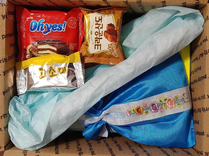 이번 설날에는 호랑이 해를 맞이하여 인터넷 검색으로 찾은 호랑이 그림을 집어넣었더니 꽤 그럴싸했다. 홍삼 캔디와 젤리를 복주머니에 넣은 후 연하장과 함께 준비를 했다. 가깝게 지내고 있는 미국 친구들, 미국 선생님께 한국의 설날과 복주머니, 홍삼 간식을 소개하며 드리며 "해피 설날!" 인사를 건넸다. 멀리사는 친구분들께는 우체국에서 가져온 택배 종이박스에 한국 간식 등 몇 가지와 연하장을 함께 보내드렸다. 택배비는 10불 내외로 다소 비싼 편이다. 배보다 배꼽이 조금 더 크지만 멀리 살아서, 이사를 가 버려서 만날 수 없는 분들께 연하장과 함께 마음을 전할 수 있어 좋았다.