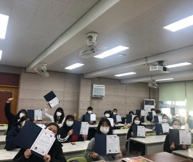 한국은 지방의 작은 소도시에 있는 한국의 고등학교 학생들이 참여를 했기에 겨울방학 시작 전인 12월 말에 학교 차원에서 수료식이 거행되었다. 한국의 김 선생님께서는 수료증을 멋진 상장 파일에 넣어서 준비를 하셨고 참가 학생 및 교장, 교감 선생님이 함께 하는 멋진 수료식을 치른 후 내게 사진을 전송해 주셨다. 멀리 미국에 있기에 함께 할 순 없었지만 학생들의 마스크 너머로 보이는 행복한 표정이 느껴져서 내 마음도 뿌듯해졌다.