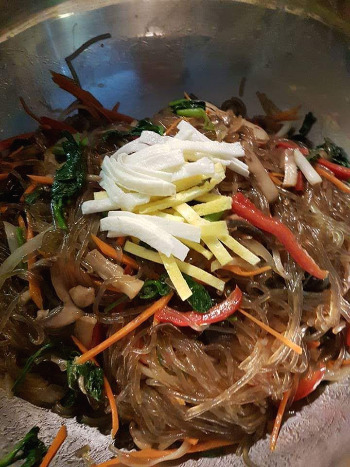 잡채 수업을 하기로 한 날, 우리 집 부엌은 아침부터 분주했다. 계란 지단은 미리 부쳐서 준비했고 당면과 채소, 양념 재료들을 챙겼다. 함께 먹을 흰쌀밥도 필요할지 모르니 크게 한 대접 준비했다. ‘파이팅! 저도 갈 거예요. 가서 도와줄 거 있음 함께 도울게요.’ 지숙씨가 문자를 보내주었다. 힘이 났다.