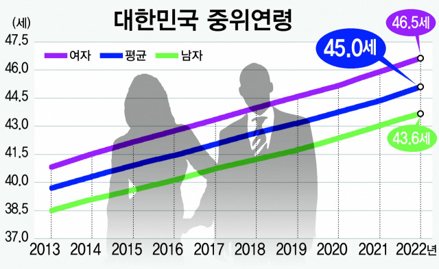 오늘날 한국 사회는 급속하게 나이가 들고 있다. 올해 마흔다섯은 딱 한가운데 있는 사람의 연령, 즉 중위연령에 해당한다. 우리나라에는 마흔다섯 보다 젊은 사람이 절반이 있고, 그 보다 늙은 사람이 절반이 있다는 것이다. 사오정이 유행어였던 약 20년 전의 중위연령은 30대 초반에 불과했으니 엄청난 변화다. 앞으로 10년 후의 중위연령은 50세라고 한다. 궁금해서 찾아본 다른 나라의 중위연령은 현재를 기준으로 미국은 서른여덟, 일본은 마흔여덟. 그러나 한국이 곧 일본을 추격한다고 하니 뭐든지 빨리빨리 잘하는 한국답다.