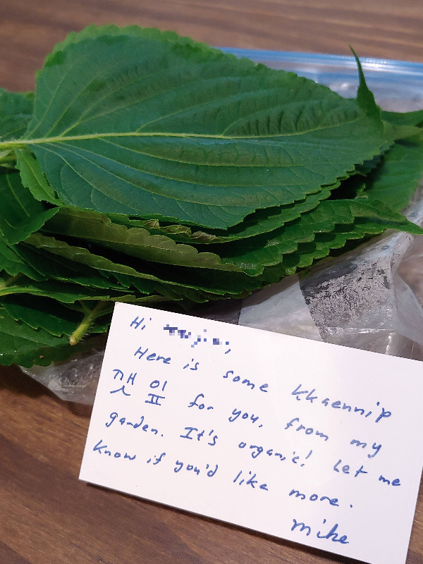 남편이 직장에서 알게 된 한 백인 친구는 미국 토박이지만 우연히 한국 음식을 접한 이후로 자주 한국 음식을 해 먹는다고 한다. 앞마당에서 깻잎을 키우며 고기를 구워서 쌈을 해서 먹는다고 해서 놀랐다. 남편을 통해 본인 집에서 손수 키운 깻잎을 몇 번 준 적이 있는데 전혀 질기지 않으면서 향긋한 한국 깻잎의 맛이 그대로 느껴져서 두 번 놀랐다. 동네 마트에서는 살 수 없는 깻잎이기에 아껴가면서? 한 장 한 장 참 맛있게! 먹었다.
