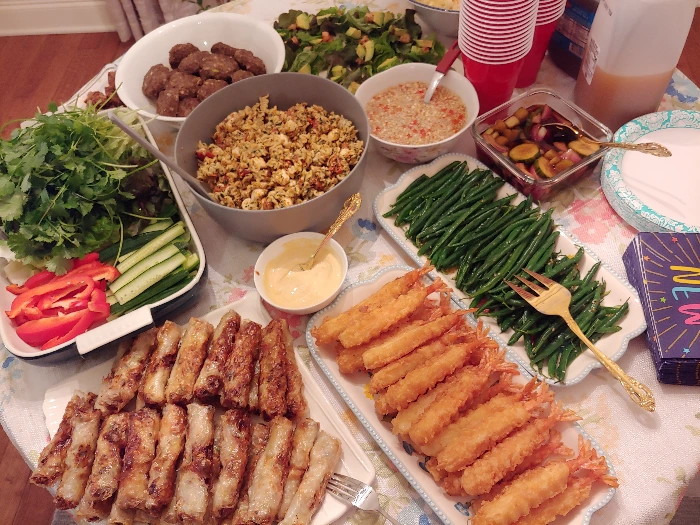 저녁 초대라 했기에 그냥 가도 상관은 없었지만 나는 한국 음식을 준비해 가고 싶었다. 불고기? 잡채? 몇 가지를 떠올리다가 요즘 종종 만들어 먹고 있는 떡갈비와 지난주 만들어 놓았던 장아찌가 좋겠다 싶었다. 간 소고기에 갖은양념과 양파 및 마늘 다진 것을 넣고, 전분 몇 숟갈로 쫀쫀함을 더해 준 뒤 오븐으로 구워내면 뚝딱 떡갈비를 완성할 수 있다. 떡갈비와 장아찌를 들고 베트남 친구네 집에 도착을 하니 미국, 중국을 포함해서 우리까지 모두 4개국, 일곱 가정이 모였다. 베트남 친구는 튀긴 스프링 롤과 새우, 다양한 채소를 푸짐하게 준비했다. 한 친구를 제외하고는 모두 처음 만난 친구들이었지만 맛있는 음식과 함께 해서 그런지 어색함 없이 서로의 이야기를 나눌 수 있었다.
