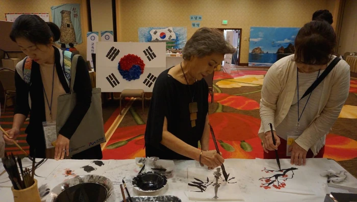 학술대회 기간 동안 미국 전역에서 모임 많은 선생님들을 만나고 많은 걸 배울 수 있었다. 특히, 사십 년 동안 수묵화를 그려오신 목원 임섭수 화백님으로부터 수묵화를 배운 것이 기억에 남는다. 오며 가며 체험할 수 있도록 진행된 코너였는데 나는 화백님의 그림이 너무 좋았다. 그래서 학회 일정 중 하루, 오후 수업을 아예 안 들어가고 화백님 옆에 있었다. 화백님은 왜 수업 안 가냐고 하셨지만 내게 그림도 그려주시고 이것저것 수묵화의 기초에 대해 가르쳐 주셨다.