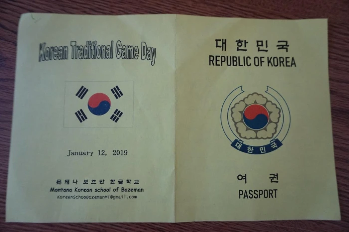 다시 돌아오자마자 교장선생님께 전통놀이 한마당을 제안드렸다. 사 온 다양한 전통놀이 용품을 가지고 한국을 좋아하는 많은 사람들과 함께 하는 시간을 갖고 싶었다. 교장선생님과 상의하여 모두 12개의 코너별 활동을 준비했다. 여권 모양의 활동지를 만들어 8개 이상 체험한 사람에게는 한국 과자를 한 봉지씩 선물로 주었다. 각 코너마다 한국분들, 몬태나주립대학교 학생들이 맡아서 진행을 했다. 장 집사님께서는 점심으로 맛있는 샌드위치를 만들어 오셨다. 나는 약밥을 만들어 갔다. 많은 분들의 협조와 참여 덕분에 행사는 대성공!