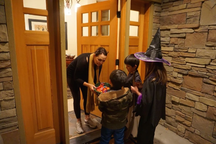 맛있는 저녁식사 후 사탕과 초콜릿을 얻기 위해 출발! 누나, 형과 함께 나서는 똘똘이의 발걸음은 더 가볍고 신이 났다. 핼러윈 때 바깥 현관 불이 켜져 있는 집은 Trick or treat을 한다는 표시가 된다. 초인종 벨을 누르면 "Trick or treat!"을 외치기도 전에 과자 바구니를 들고 나오시는 경우가 많았다. 집에 일이 있거나 비우게 되는 경우 문 앞에 사탕과 초콜릿 바구니를 놓아두고 "2개씩 가져가세요."라고 안내해 놓기도 했다.