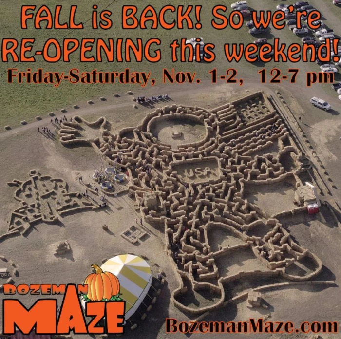 9월 말부터 11월 초까지 몬태나 보즈만 인근에서는 커다란 미로 찾기 두 곳이 펼쳐진다. 한 곳은 마른 옥수수로 가득 찬 곳에 길을 내어서 미로 모양으로 만들어 놓은 콘 메이즈, 한 곳은 마른 짚 더미를 쌓아서 길을 만들어 놓은 헤이 메이즈. 작년에는 팬데믹 때문에 행사가 취소되었지만 2019년까지는 매년 가을마다 메이즈를 즐길 수 있었다.