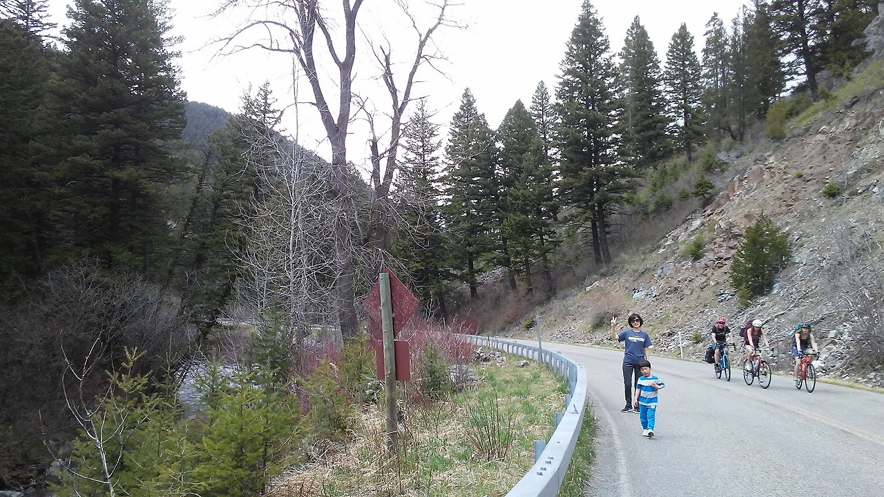 두 번째로 하얄라이트를 찾은 때는 두 달쯤 지난 5월 초, 주말이었다. 우리 가족은 차도 생겼으므로 주말 나들이 장소로 이곳을 골랐다. 그런데 산길 도로로 조금 올라가니 차량 진입을 막아 놓은 것이었다. 해빙기인 5월 중순까지 차량을 통제한다는 것을 그제야 알았다. 진입 장벽 근처에는 몇몇 차량들이 주차를 하고 있었는데 대부분 자전거를 가지고 왔다. 차는 못 들어가지만 자전거는 오케이. 우리들은 자전거가 없었기에 차에서 내려 도로 위를 걷기로 했다. 도로 옆으로는 맑은 물이 계속 우리를 따라 흘렀고 자전거를 탄 사람들은 “Hi!” 손을 흔들며 지나갔다.