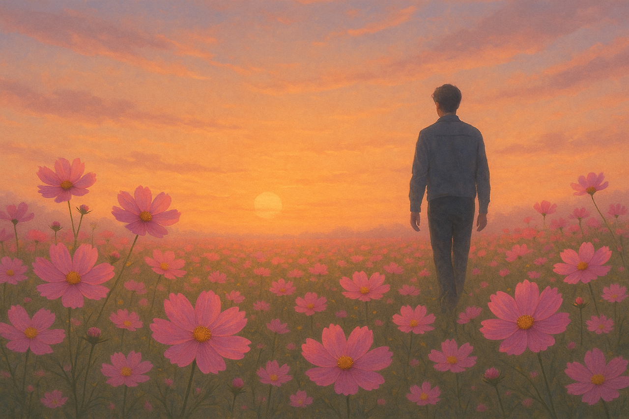 남자는 깨달았습니다. 그것은 아버지가 돌아올 거라는 사실이었습니다. 아버지와 함께 살았던 곳을 떠나 멀리 왔지만, 어쩌면 아버지는 그곳에 이미 돌아왔을지도 모를 일이었습니다. 아니, 아직 돌아오지 않았을 수도 있지만 그래도 아버지는 돌아온다고 약속했었습니다. 남자는 코스모스가 피면 다시 돌아온다고 말했던 아버지의 말이 생각났습니다. 이제 돌아가야 할 것은 다름 아닌 자신이라는 사실을 깨달았습니다. 남자는 결심했습니다.