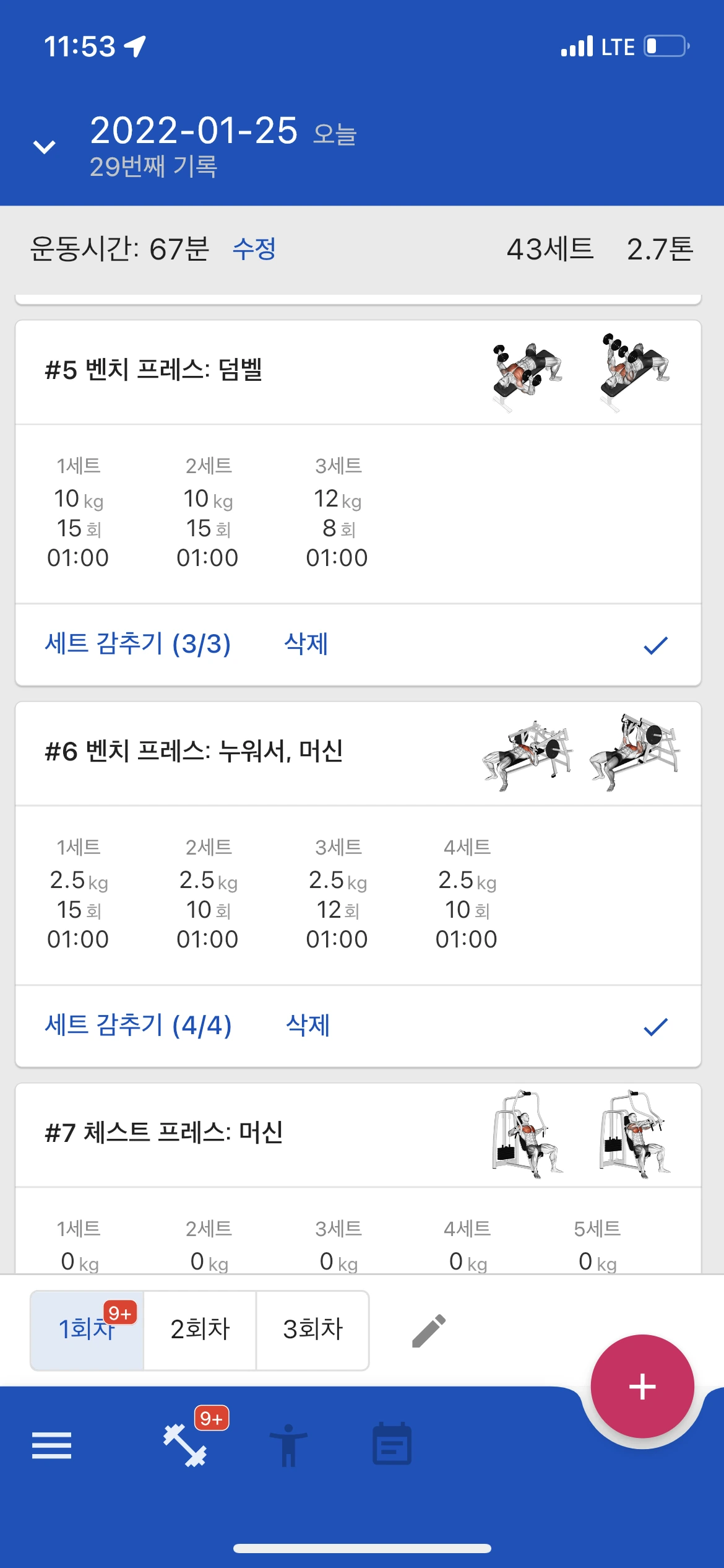 벤치 일반으로했을때느낌잘안와서 스미스머신으로