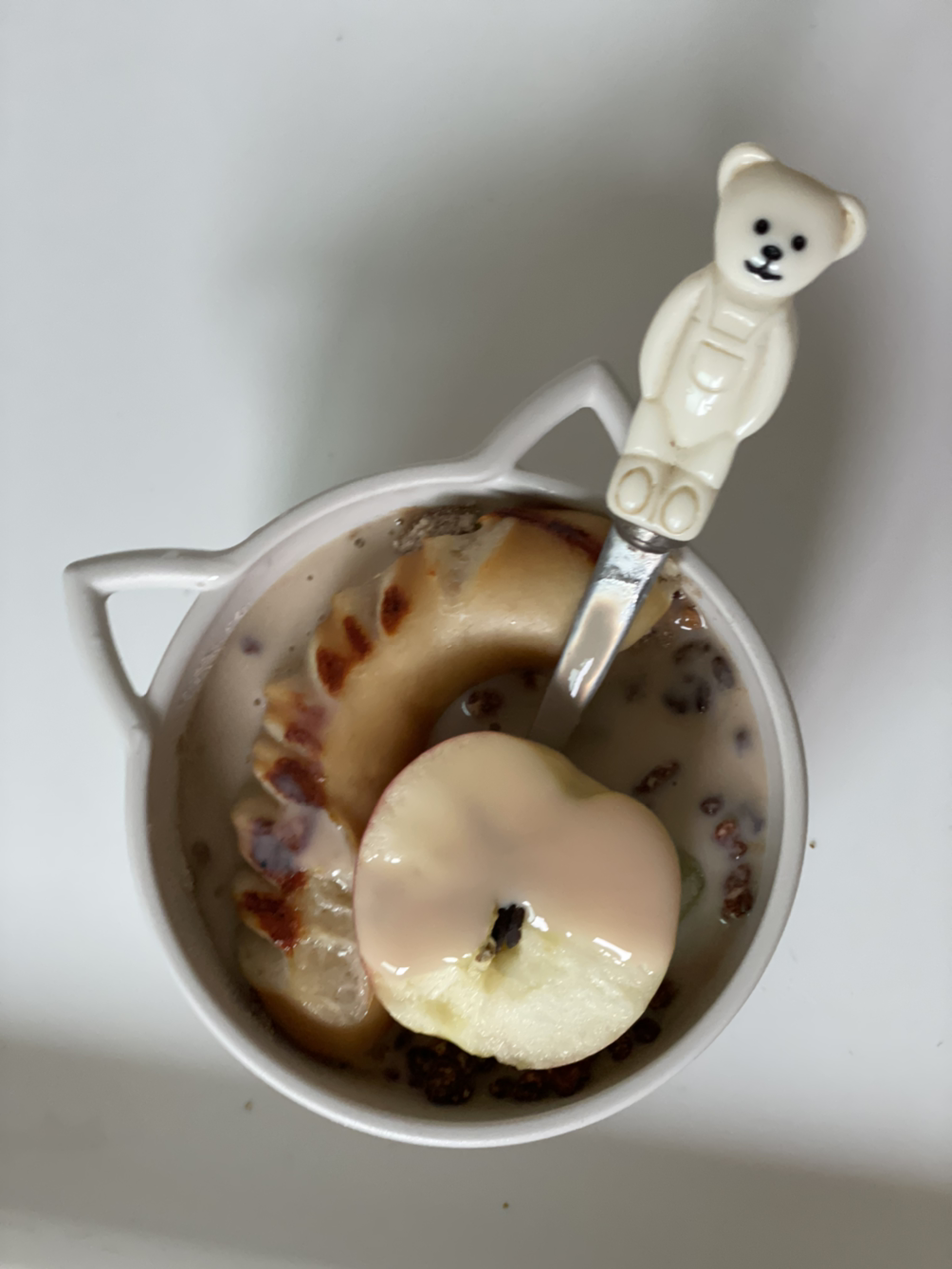 오늘의 아췸~ 오늘은 사과넣어봤다 따숩게 먹으니좋당 ㅎ난 아침에는 따순거 가 좋아