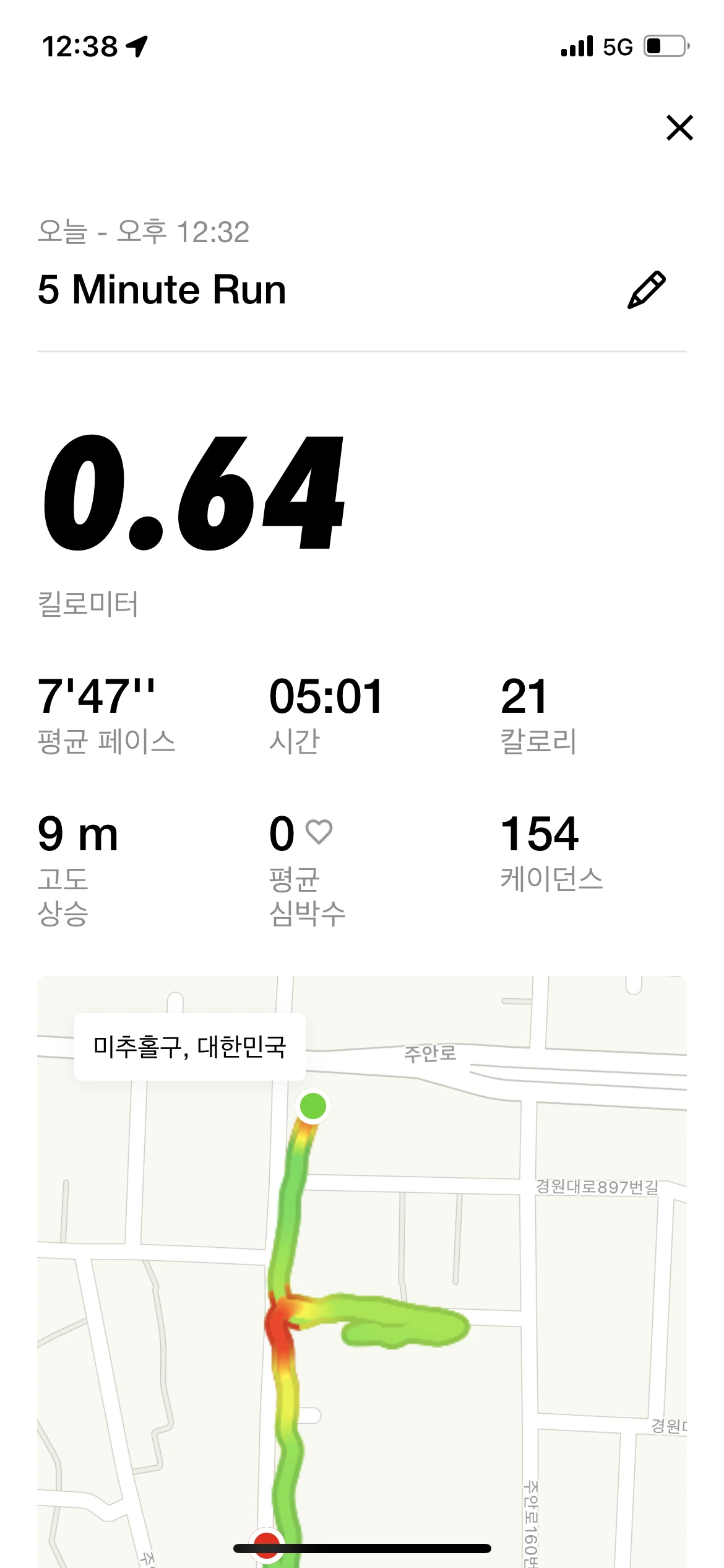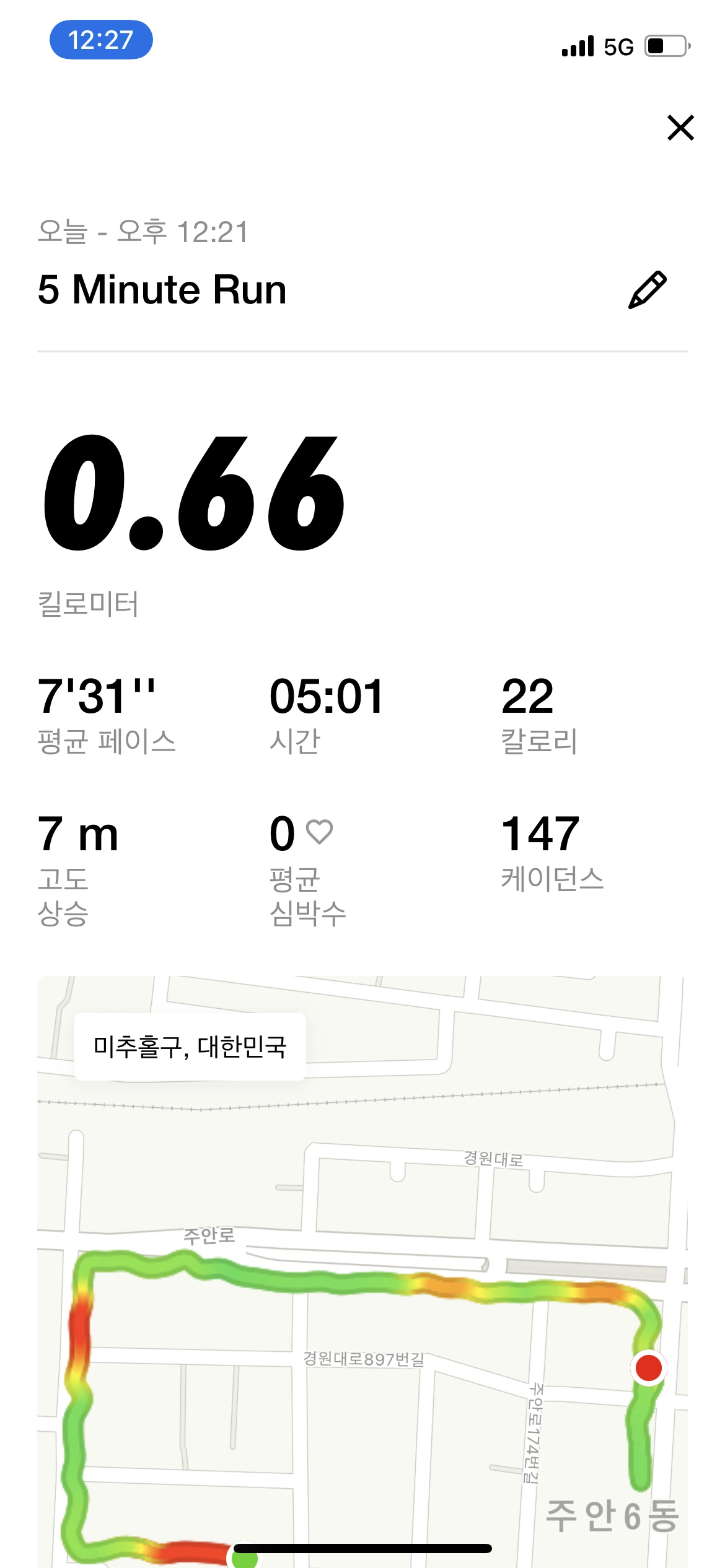 오늘은 비안와서 5분런닝 ㅎㅎㅎ 오늘도 상쾌하고 기록늘고 해피하게완주!!!