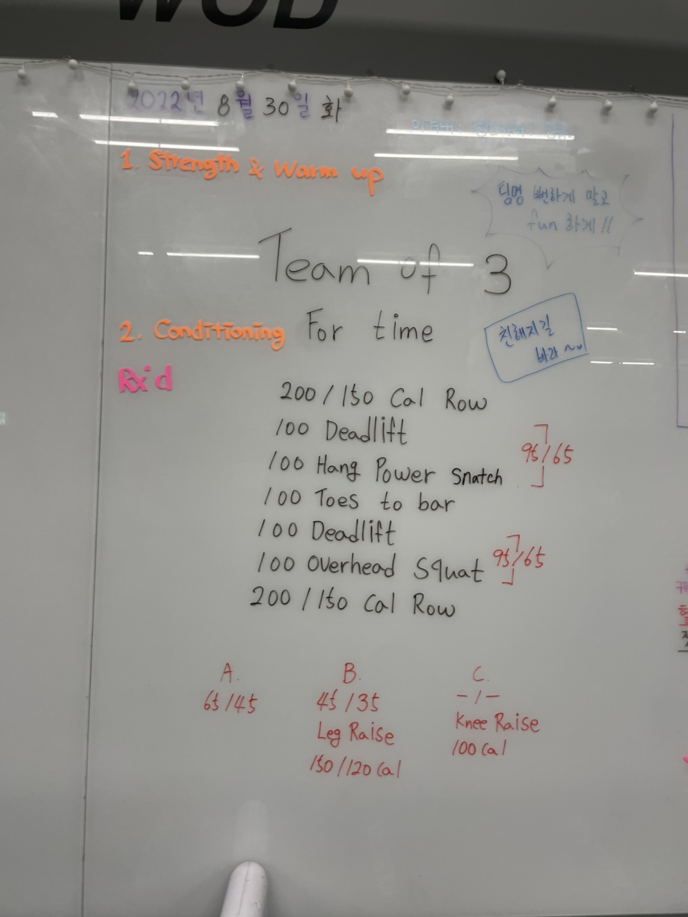 오늘은팀와드 타임캡안에는 못 끝냈지만많이했다 팀와드는 재밌다 내가못하는것도 하구 스내치 연습!
