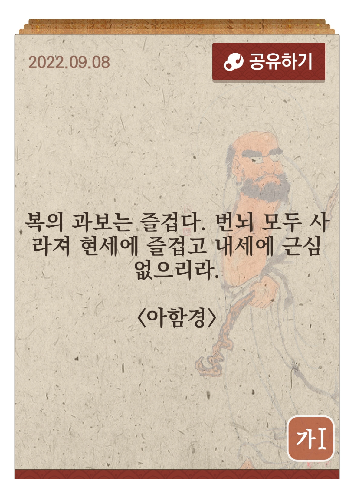 과보 과거의 업인(業因)에 따른 결과. 내가 행한대로 받게된다좋게 행동하자 후회할짓 하지말자