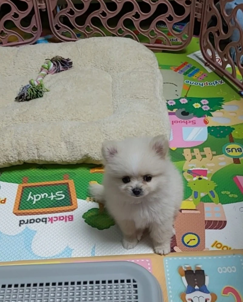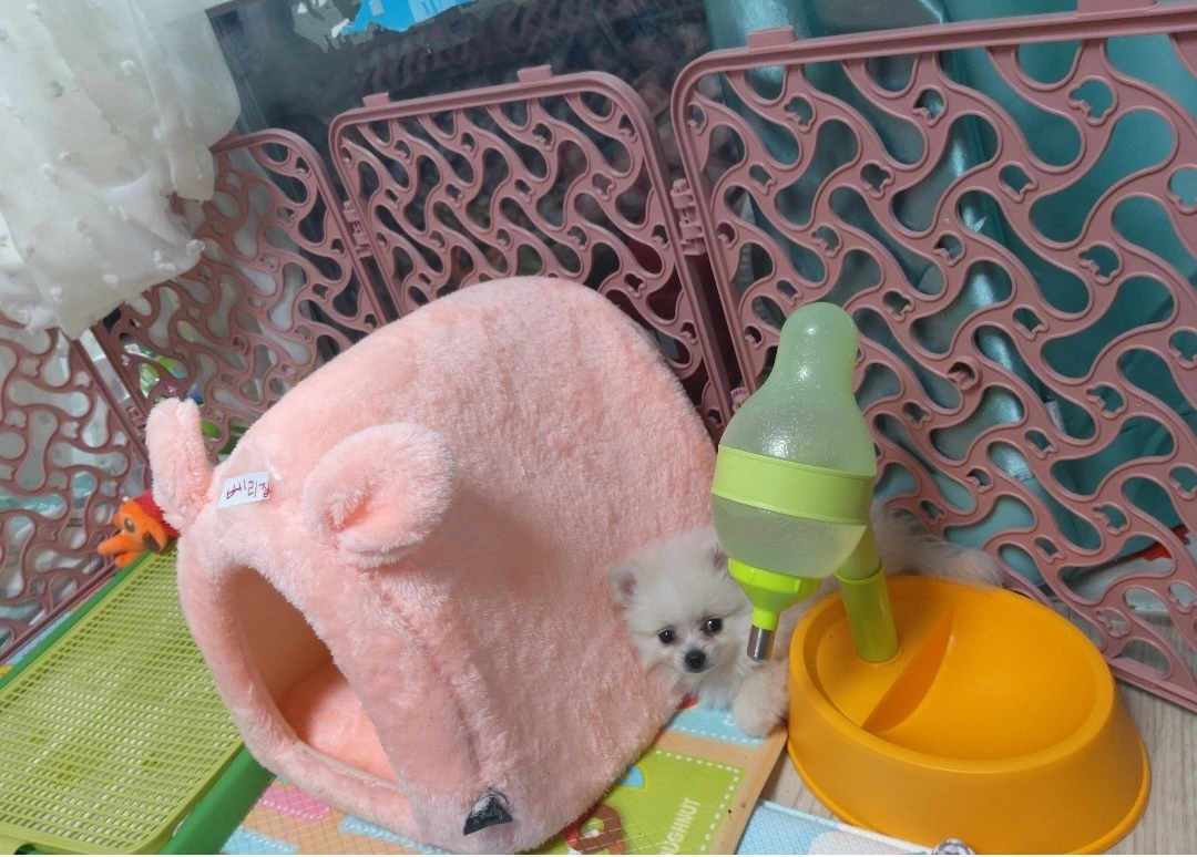 이로써 쌍꺼풀이 짙던 하얀 폼피츠는 우리 가족이 된 것이다.