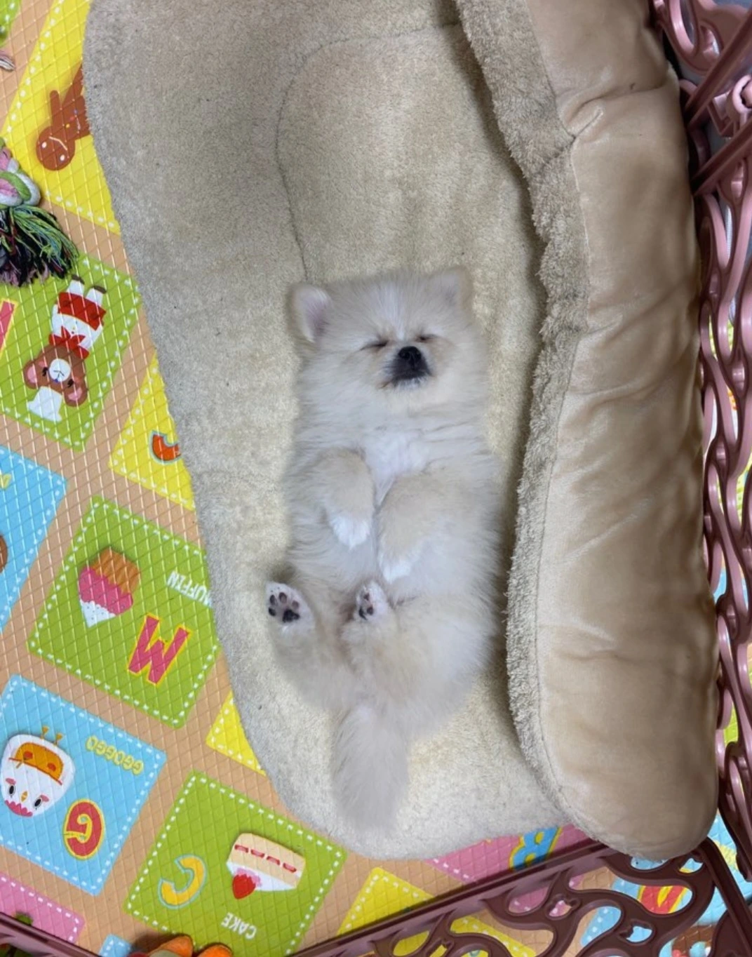 나와 첫째는 폼피츠를 픽했지만, 남편과 둘째는 먹이통에서 불쌍하게 자고 있던 갈색 말티푸가 눈에 밟혔던 것이다.