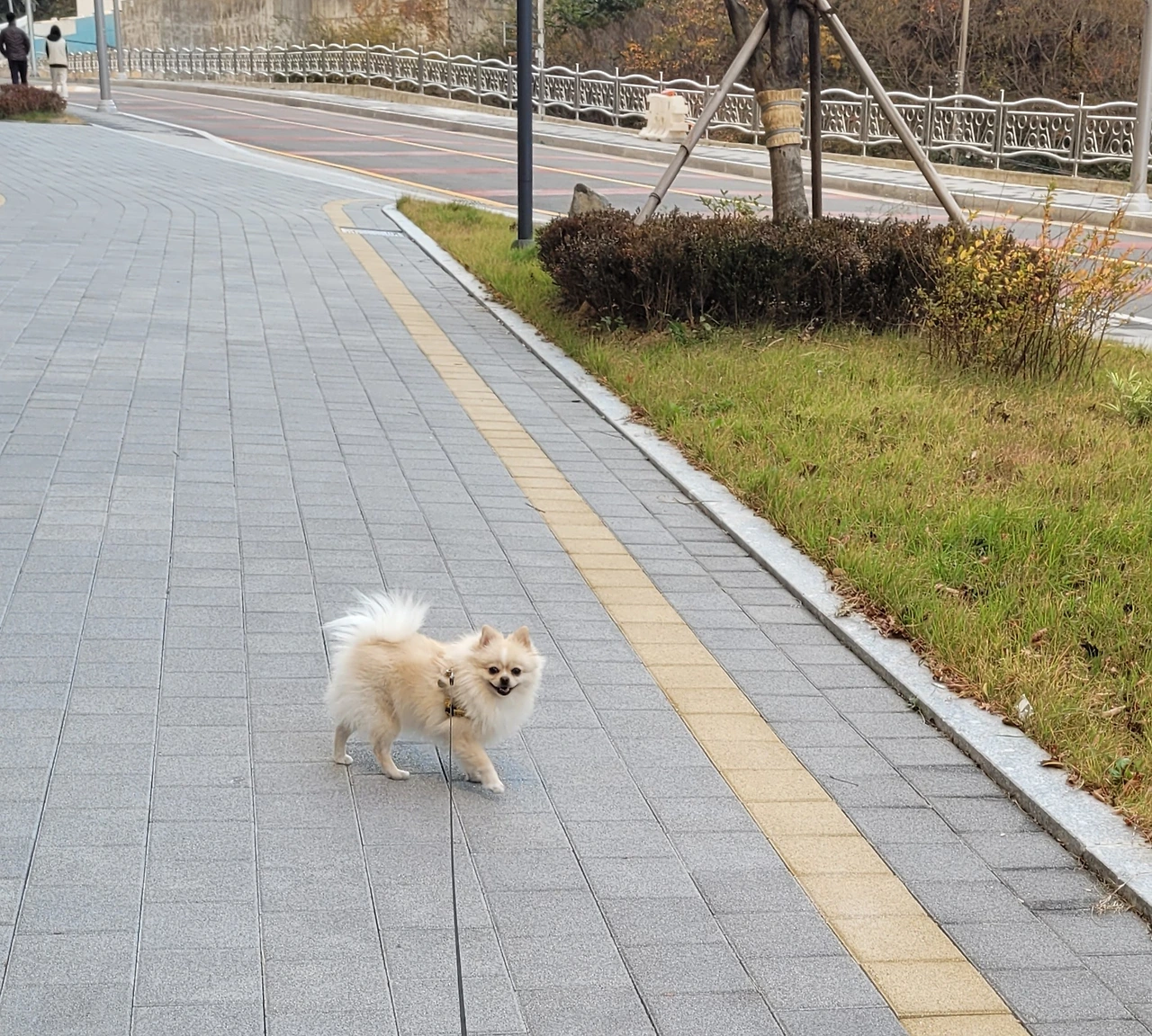 아이들을 학교에 보낸 후, 햇살 가득 머금은 낮에 목줄을 채우고 배변봉투와 물을 챙겨 산책에 나선다.