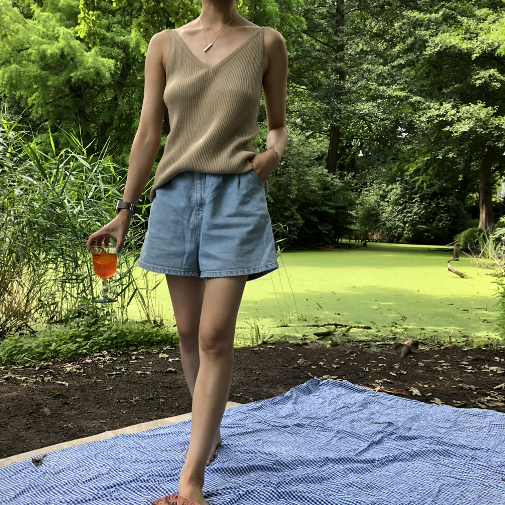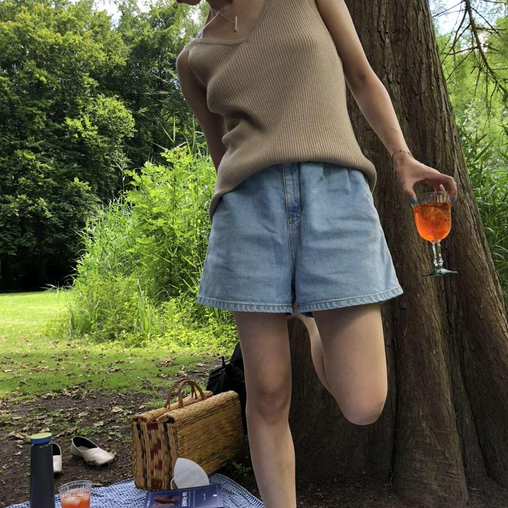 이날의 준비는, 여름이니 아페롤을 마시자!! 그럼 얼음을 좋아하는 텀블러에 담아 준비하고, 플라스틱 잔에 마시기는 싫으니 유리 고블렛잔을 준비하자! 거기에 베를린에 있는 비건 도넛을 먹으면 행복한 간식이지 않을까? 먹기만 하면 심심하니 넷플릭스나 유튜브를 오프라인 저장해서 볼 수 있게 아이패드도 챙기고, 그늘이라 시원하겠지만 혹시 모르니 선풍기도 하나 챙기자!! 등의 준비물을 줄줄이 읊으며 함께 챙기는 과정은 더워도 좋았다.