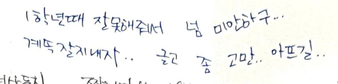 나는 아무것도 모르는 척하며 고개를 처박고 한 그릇 뚝딱 해치웠다. 이 뒤로 이 친구와 더 이상 친해지지 못한 채 1학년이 끝이 났다. 1학년이 마무리될 때쯤 주고받았던 롤링페이퍼에 그 친구가 썼던 이글.