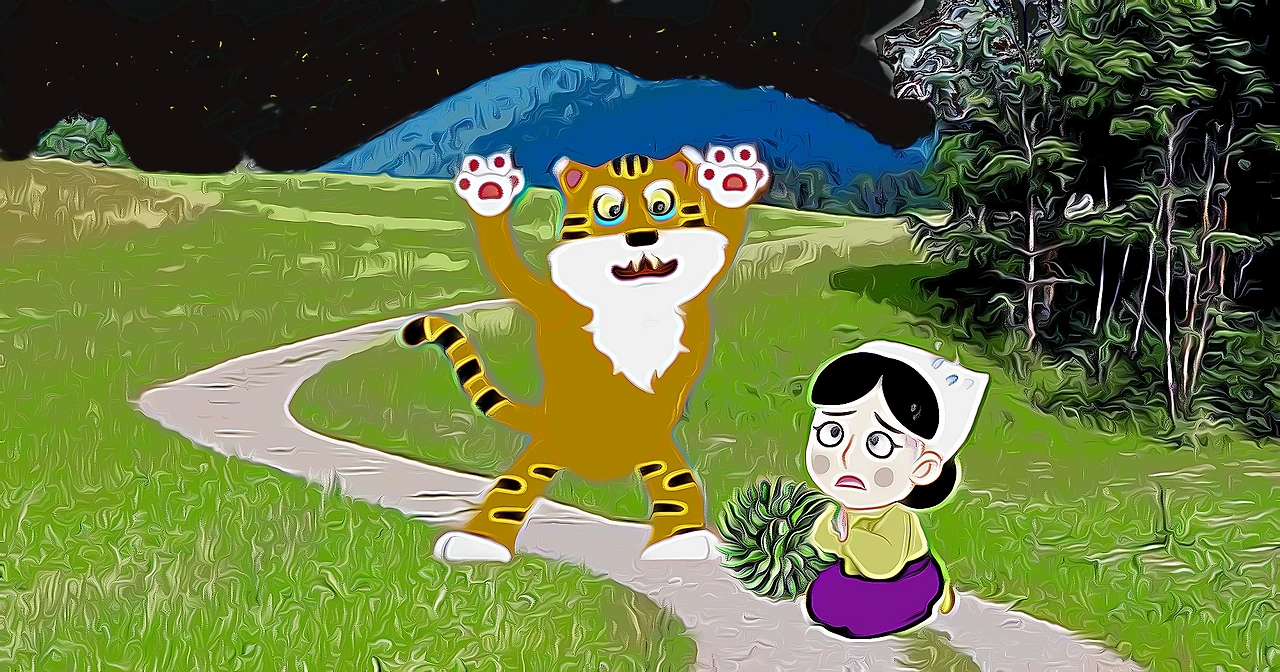 다음 고개를 넘으니 또 호랑이가 떡을 달라고 나타납니다.
