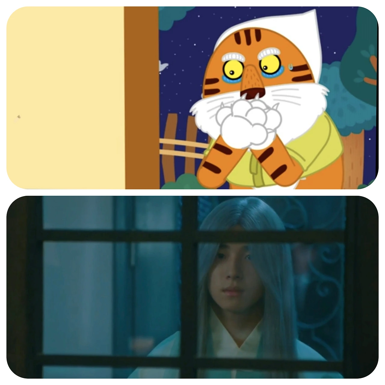 엄마의 모습을 하고 있는 호랑이가 손을 불쑥 넣어 확인시켜 줍니다.