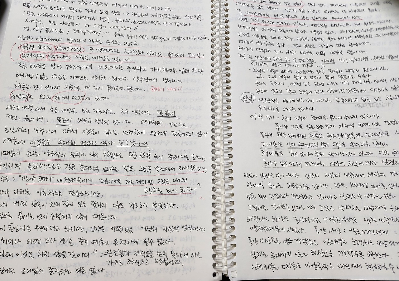 그래도 계속 읽었고, 이해 안 되는 내용을 알아내려고 또박또박 읽기도, 필사도, 애매한 단어는 찾아가면서 계속 읽어 나갔다. 그런 과정이 있었기에 3개월쯤 되니 책속에서 내가 배우고 실천해야 할 것들이 조금씩 눈에 들어왔다. 조금씩 읽히는 것이었다.