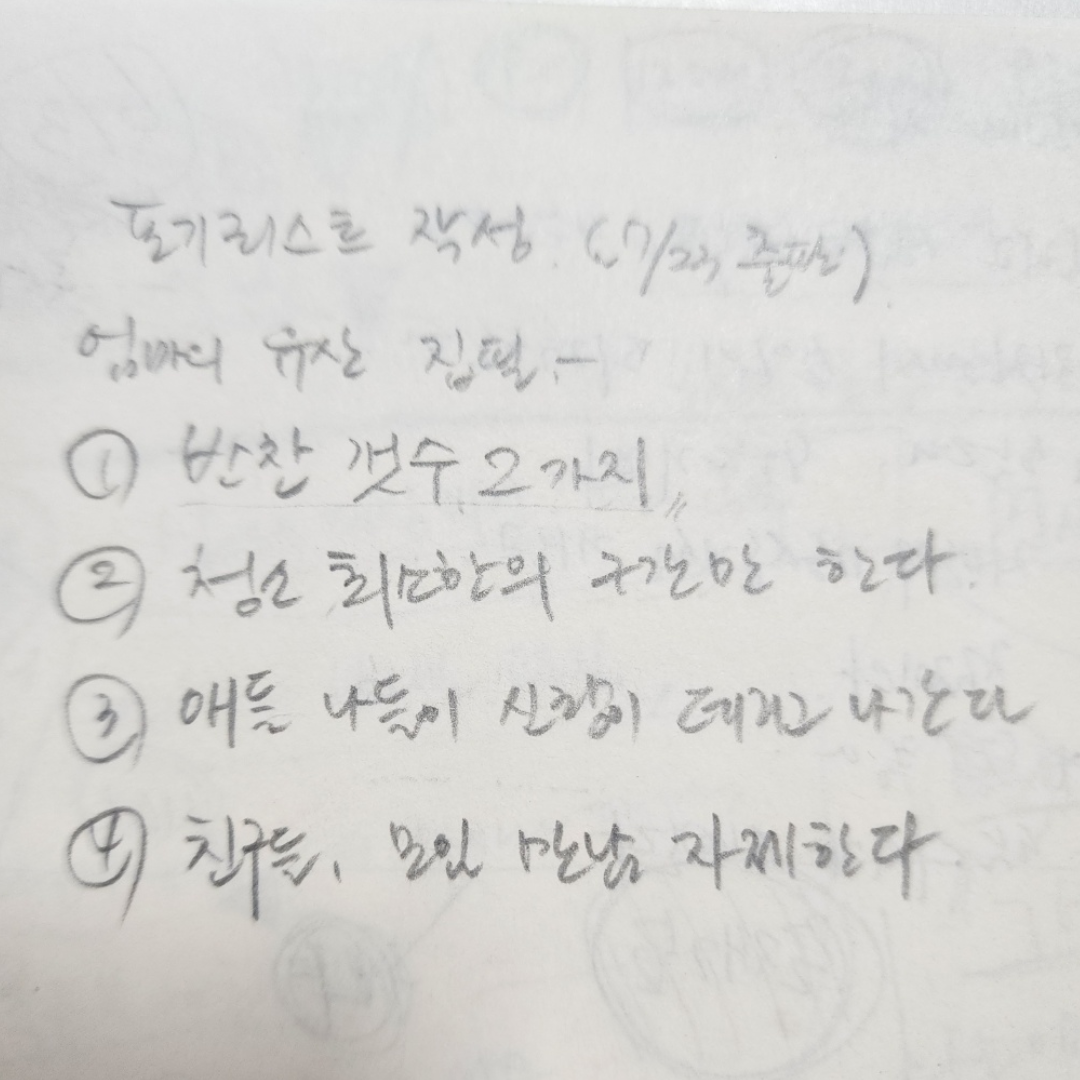 스스로를 보호하는 본능이었을까? 엄마는 무의식적으로 포기 리스트를 마음속으로 작성하고 있었더라고. 그것을 써 봤지. 확실히 구체적으로 적어보니 우선순위가 더 확실해지더라.