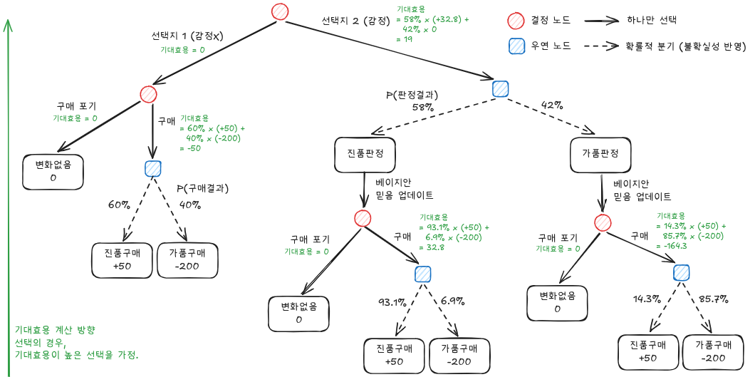 감정이 100% 정확하지 않음에도 의사결정을 개선하는 효과가 비용을 훨씬 초과합니다. 이것이 베이지안 프레임워크가 보여주는 통찰입니다. 불완전한 정보라도 의사결정을 개선할 수 있다면 충분한 가치가 있다는 것이죠.