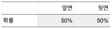 단순하죠? 하지만 이 간단한 표가 동전 던지기의 모든 정보를 담고 있습니다.