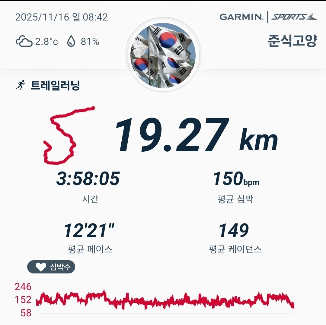 19.27km의 산길, 3시간 58분의 긴 호흡.