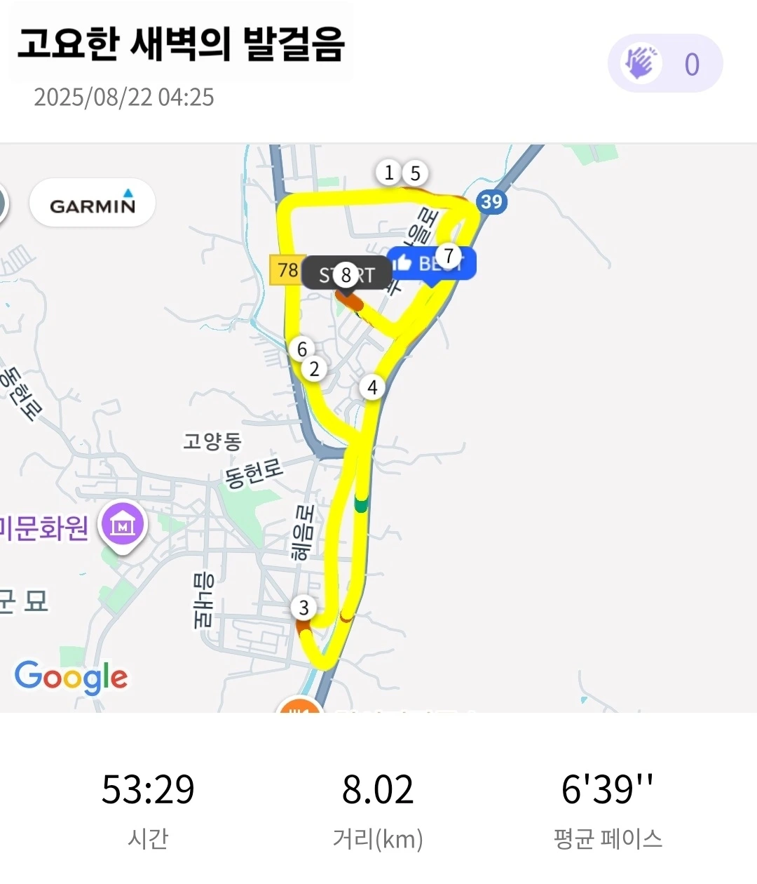 새벽, 아직 세상은 조용했고 공기도 무겁게 내려앉아 있었습니다. 이어폰도 꽂지 않고 발걸음 소리와 호흡, 그리고 심장의 박동만을 들으며 도로를 달렸습니다. 늘 찾던 수변길은 공사로 막혀 있었습니다. 아쉬움이 있었지만, 곧 다른 길을 찾아 자연스럽게 몸을 맡겼습니다. 닫힌 길이 있으면 반드시 열려 있는 길도 있다는 사실을, 러닝은 늘 삶의 은유처럼 가르쳐줍니다. 심박수는 일정하게 흐르고, 그 리듬 속에서 오히려 제 안의 고요를 더 크게 들을 수 있었습니다.