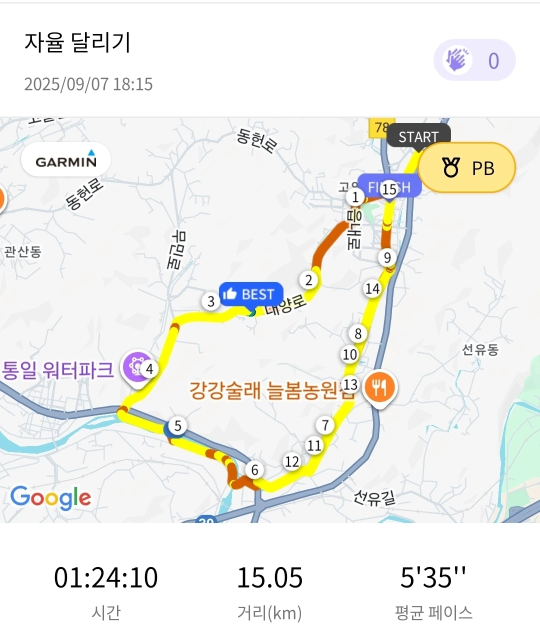 오늘은 까발로 러닝화와의 첫 만남이었다. 안정적이고 반응성도 좋았지만, 장거리에서는 쿠션이 다소 아쉬웠다. 그러나 그조차 새로운 기대의 시작으로 남았다.