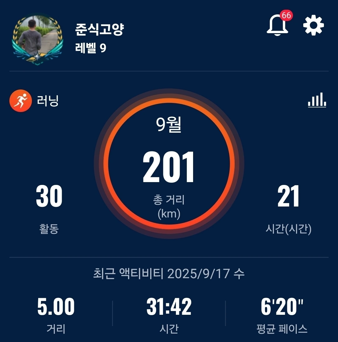 9월 17일 · 매일 달리기 164일차 · 손기정 마라톤 D-56