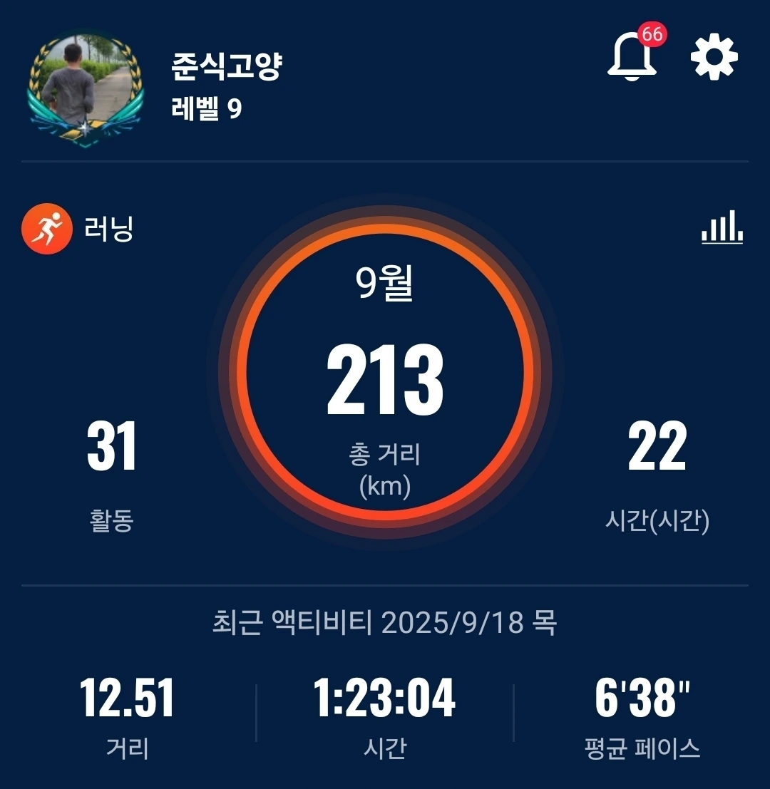 9월 18일 · 매일 달리기 165일차 · 손기정 마라톤 D-55