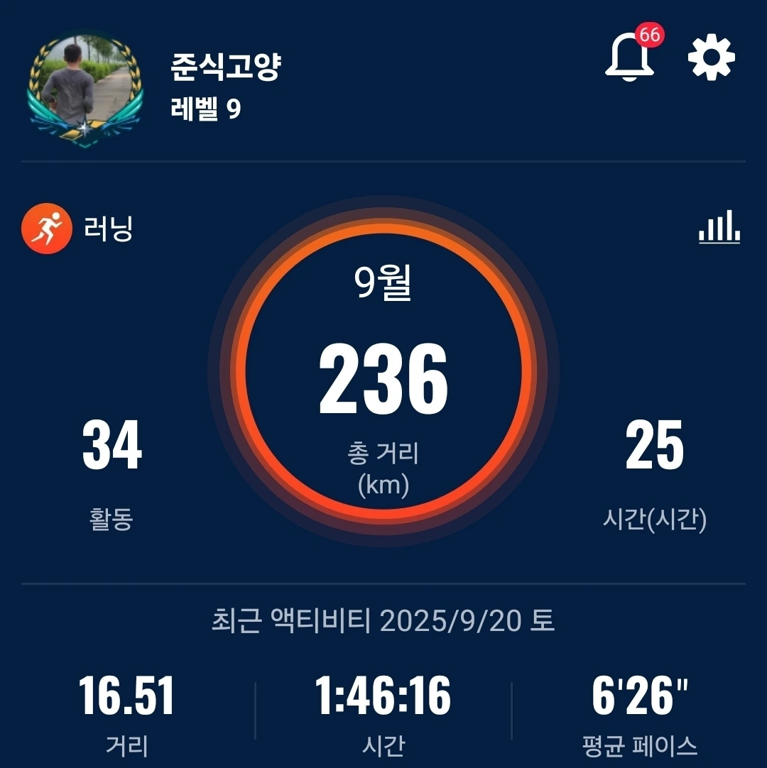 9월 20일 · 매일 달리기 167일차 · 손기정 마라톤 D-56
