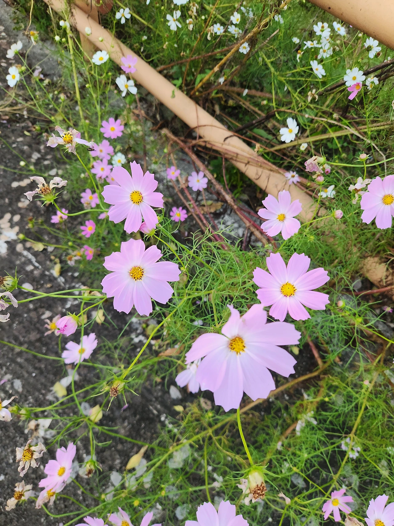 벼가 고개를 숙이고 코스모스가 피어 있었다.