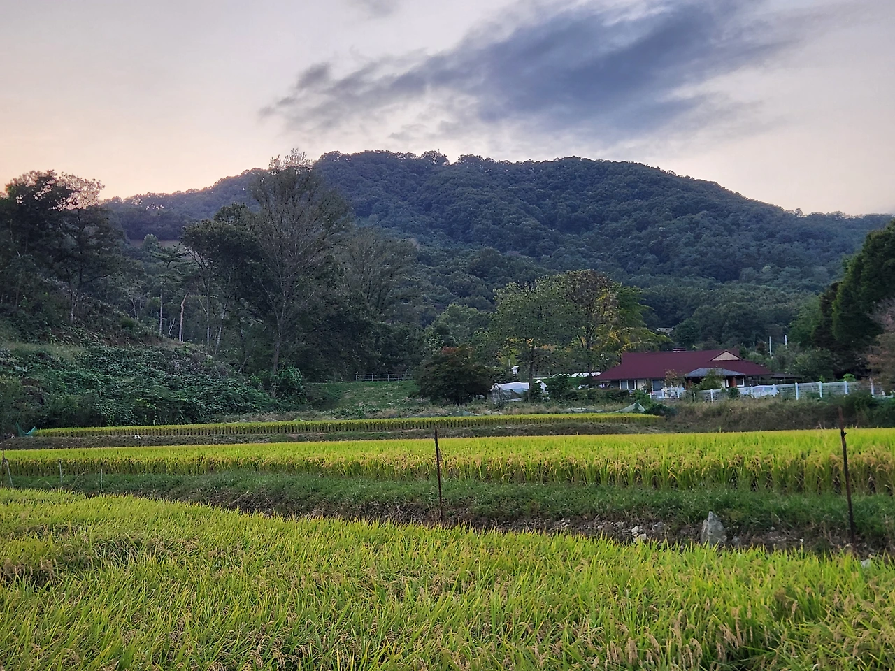 그리고 해 질 무렵, 논길을 따라 천천히 달렸다.