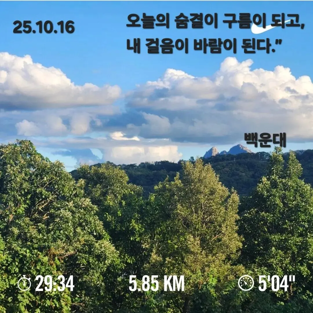 “오늘의 숨결이 구름이 되고, 내 걸음이 바람이 된다.”