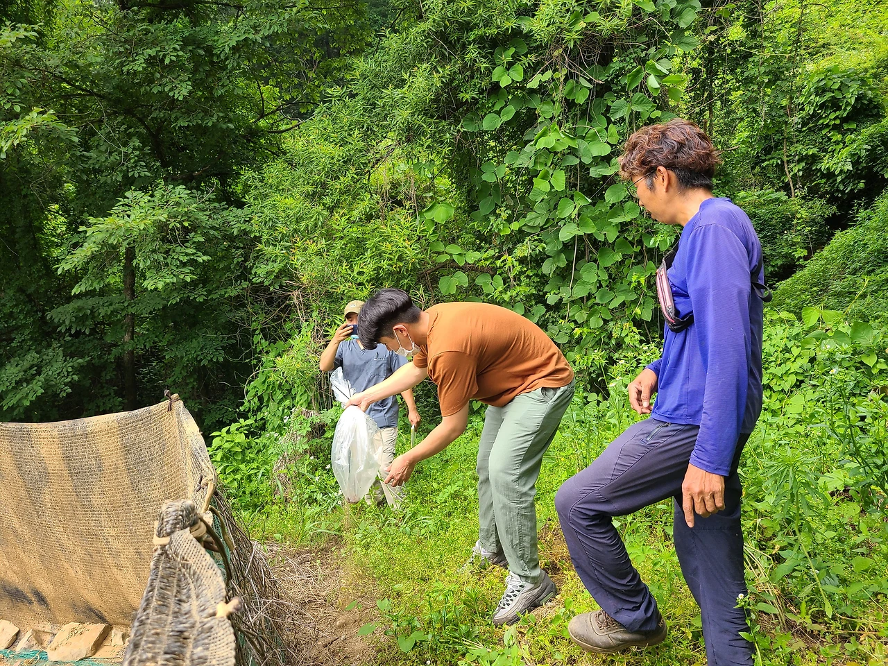 또 다른 농가를 방문하였다. 산에 인접한 곳에 옥수수밭이 있었는데, 고압의 전기가 순간적으로 흐르는 철책이 밭을 빙 둘러싸고 있었다. 태양열로 전기를 충전하는 이 철책은 이상기후로 계속되는 비와 흐린 날이 이어져 전기가 흐르지 않은 지 오래되었다고 한다. 둘러보니 옥수수들이 거의 땅에 쓰러져 있었다. 수컷 멧돼지는 혼자 와서 적당히 먹고 가지만, 새끼 딸린 암컷이 오면 옥수수밭 전체가 엉망이 된다고 한다. 새끼들에게 높이 달린 옥수수를 먹이기 위해 밭 전체를 굴러다니며 옥수숫대를 쓰러뜨린다는 것이다. 피해 입은 농민의 걱정 어린 한숨과는 별개로, 새끼들에게 옥수수를 먹이려 그 넓은 밭을 굴러 다녔을 어미 멧돼지를 상상하니 어미로서의 고단함이 느껴졌다.