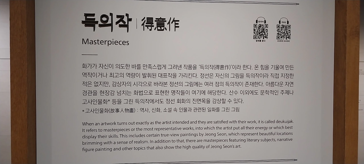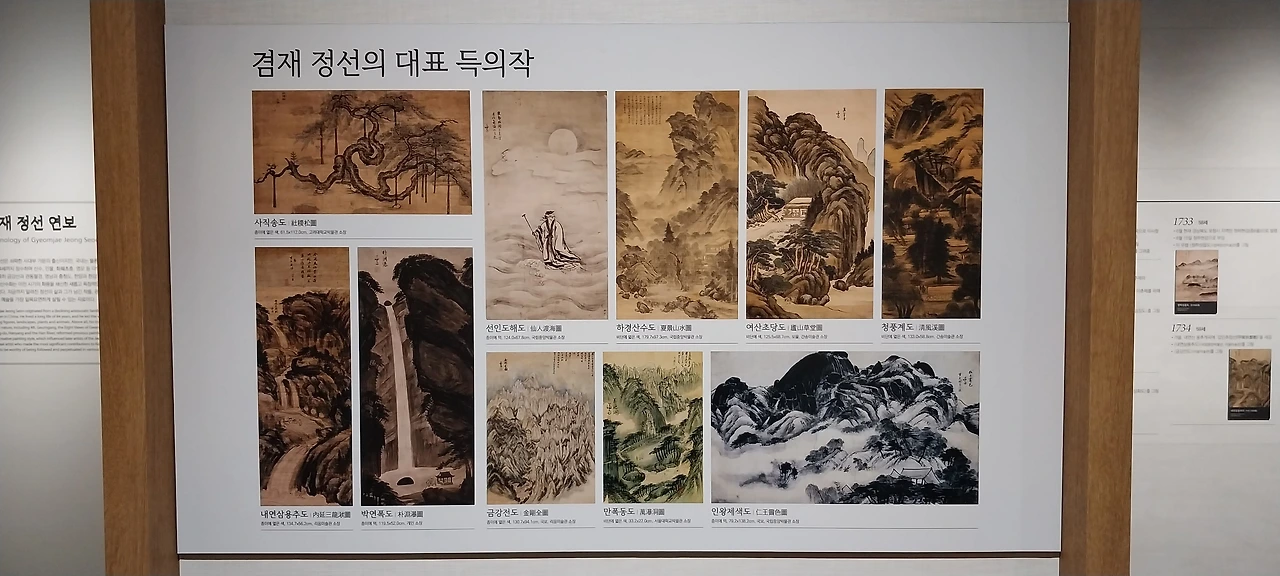 강서구에 겸재정선미술관이 세워진 이유는 정선이 그 시대에 양천현(현 강서구 지역)의 현감(현 구청장에 해당)을 지냈던 인연 때문인 듯했다. 정선의 원화들은 국립중앙박물관, 호암미술관, 간송미술관 등에 소장 중이고 대부분의 그림은 복사본이었다. 하지만 미술애호가가 아닌 내게는 정선을 느끼기에는 충분한 전시였다.