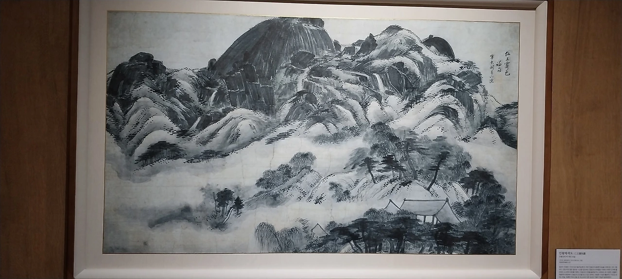 미술관에 들어서니 안내대에 앉아계시던 분이 반색을 하며 오늘은 설연휴라서 입장료(평소에는 1,000원)가 무료라고 했다. 그녀는 이곳은 한 번 와서는 안 되는 곳이라고 자랑했지만 아무 기대 없이 겸재 정선 전시장인 2층으로 올라갔다.