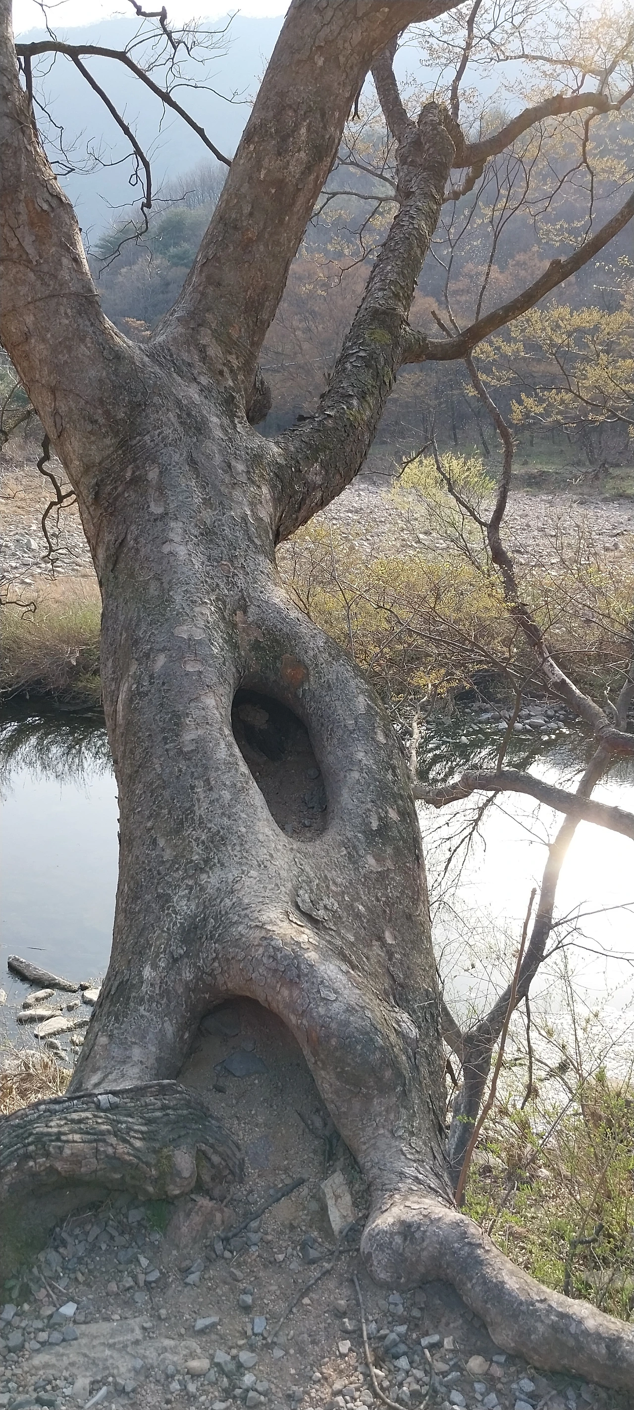 오는 길에 물가에서 쉬며 바라본 건너편 소나무 군락. 초록빛이 눈부셨다. 그들 뒤로 줄지어 서있는 느티나무들. 연한 녹두색을 띠기 시작한 수관들과 연륜이 느껴지는 수피들은 보는 이에게 한없는 위로였다. "그대 있음에"라는 가곡이 생각난다. 나중에 내게 위로를 주는 나무를 또 만나거든 일절이라도 불러주는 것은 어떨까? 나무도 듣는다고 하니까.