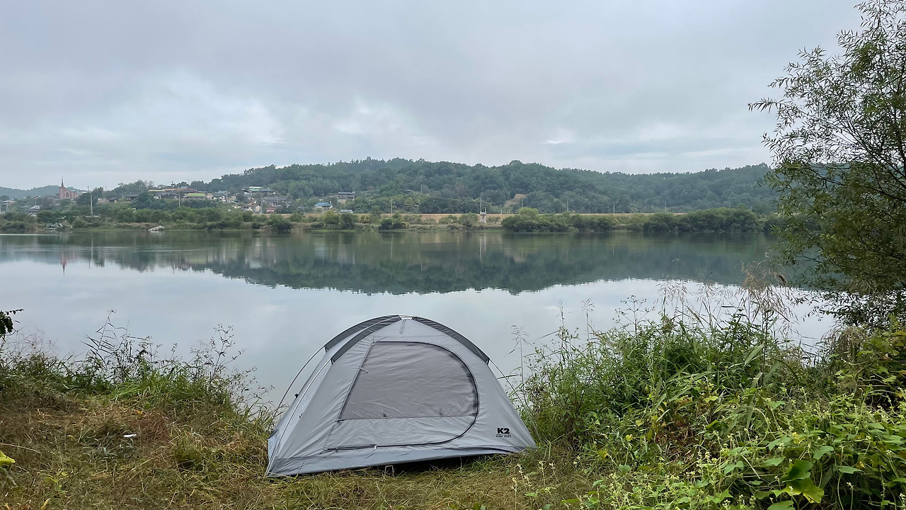 낙동강 일몰을 바라보며 캠핑 할 요량이었는데 도착하니 벌써 해가 넘어가고 있었다. 약간의 자연과 함께하는 낭만을 기대했지만 너무 자연적인 나머지 온갖 모기와 풀벌레들이 나를 반겼다. 할 수 없지 뭐. 어두워지기 전 재빨리 텐트를 치고 안으로 들어간다.